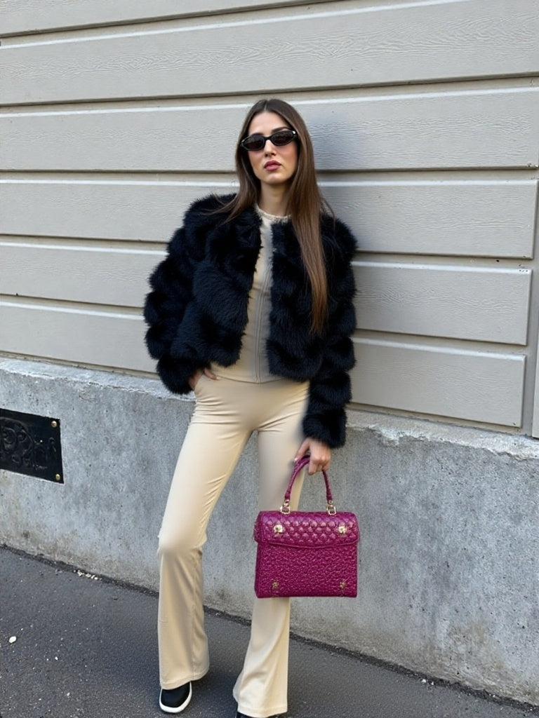 Get ready to turn heads with our Black Thick Faux Fur Paneled Layered Jacket! This luxurious and stylish jacket is definitely a must-have for the season. Its unique faux fur paneling adds a touch of elegance to any outfit. Don't miss out on the jacket of the season!