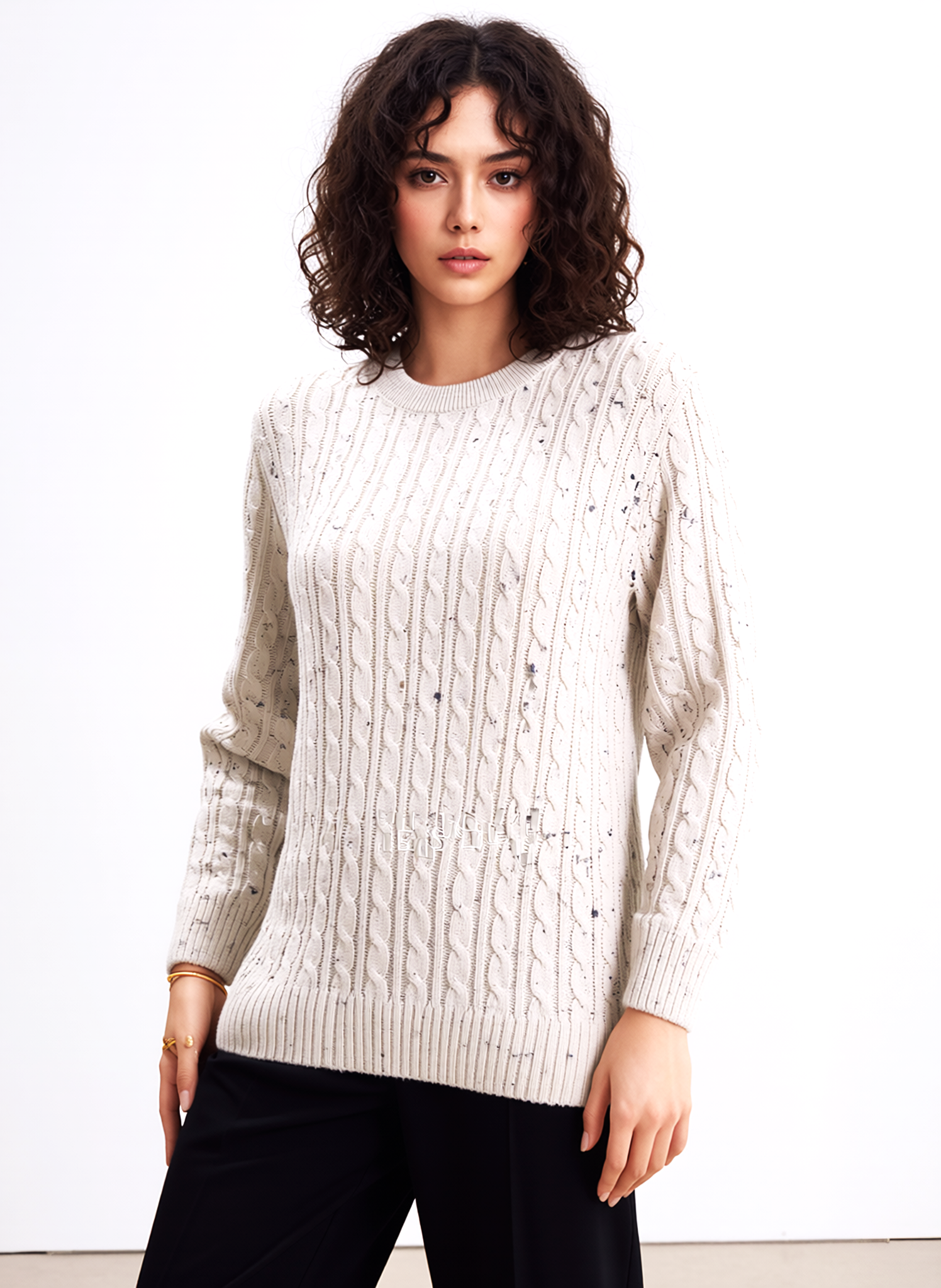Flax Round Neck Cable Knit Jumper